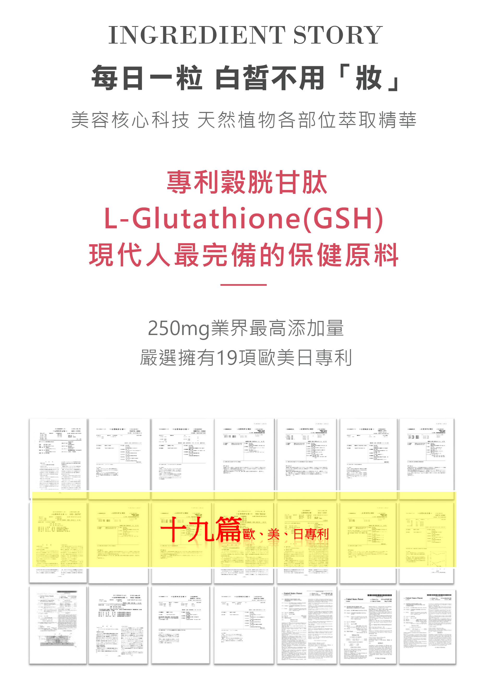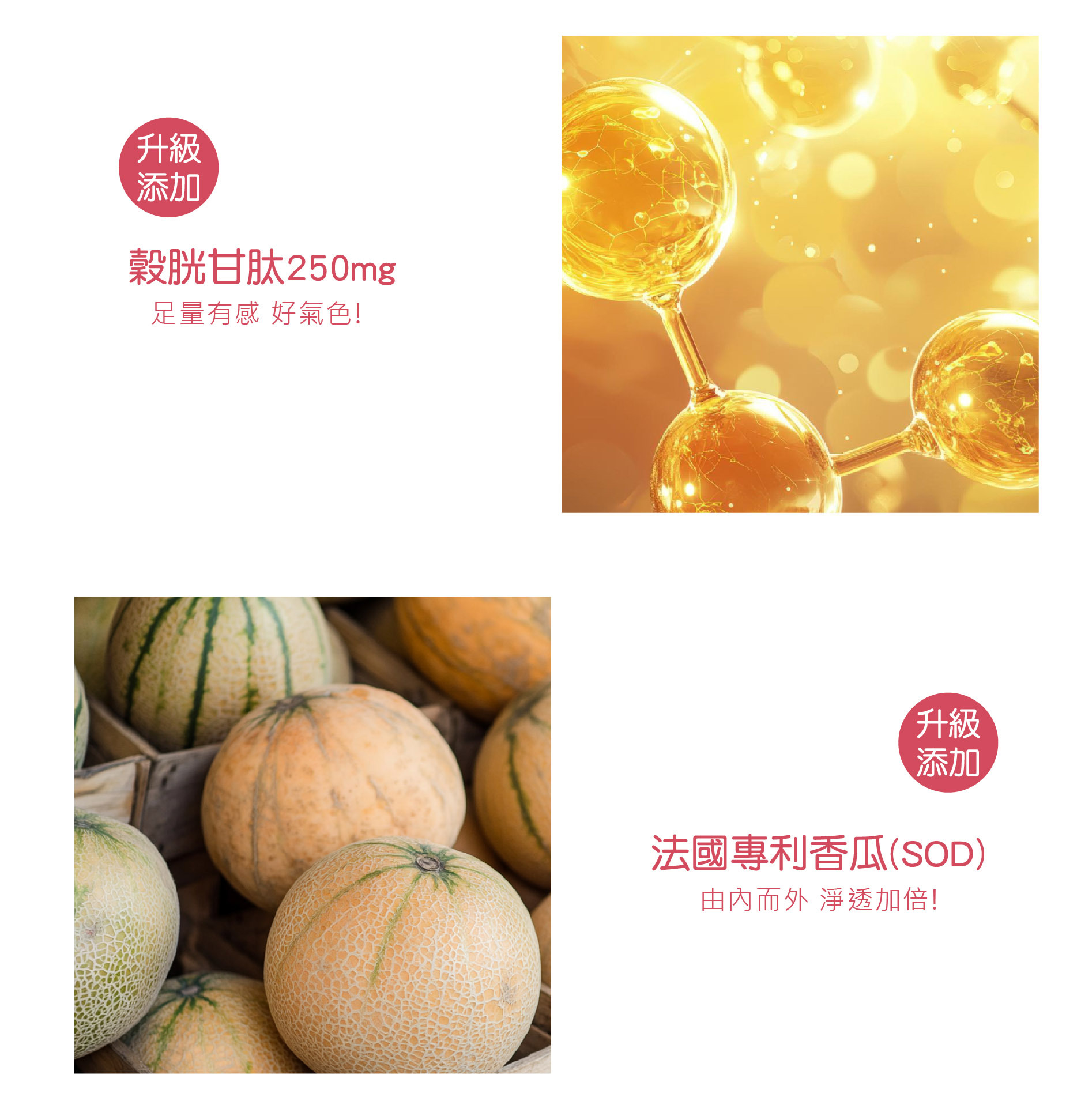 • 取自高純度穀胱甘肽,強效吸收,維持透亮好氣色。