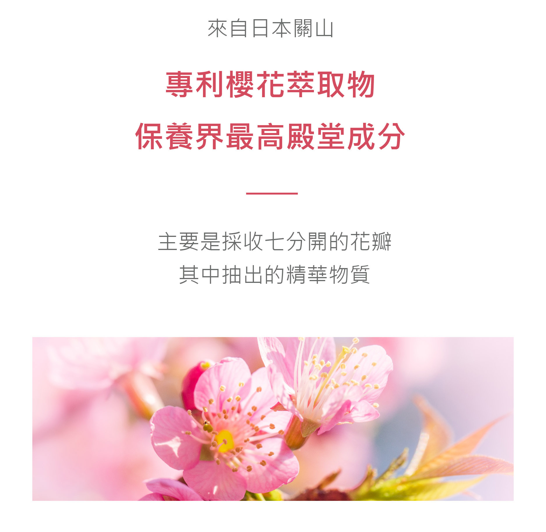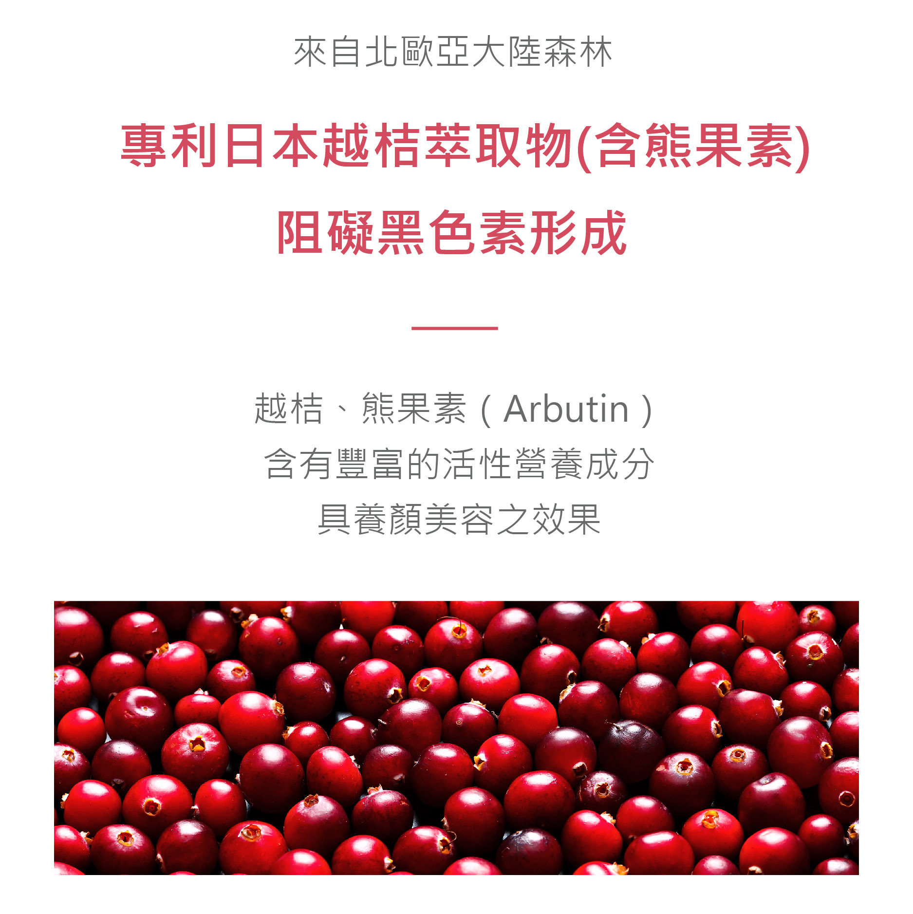 穀胱甘肽、維生素C、玫瑰果萃取物(玫瑰果萃取物、麥芽糊精)、流行鏈球菌發酵物(含透明質酸鈉)、菸鹼醯胺、松樹皮萃取物、櫻花萃取物(麥芽糊精、櫻花萃取物、抗壞血酸、DL-蘋果酸)、番茄濃縮物(冰晶番茄)、越桔萃取物(越橘萃取物、麥芽糊精)、葡萄萃取物(含白藜蘆醇)、香瓜萃取物、米萃取物(含神經醯胺)(環狀糊精、米萃取物)、黑胡椒萃取物(含胡椒鹼)、日本玫瑰胎座萃取