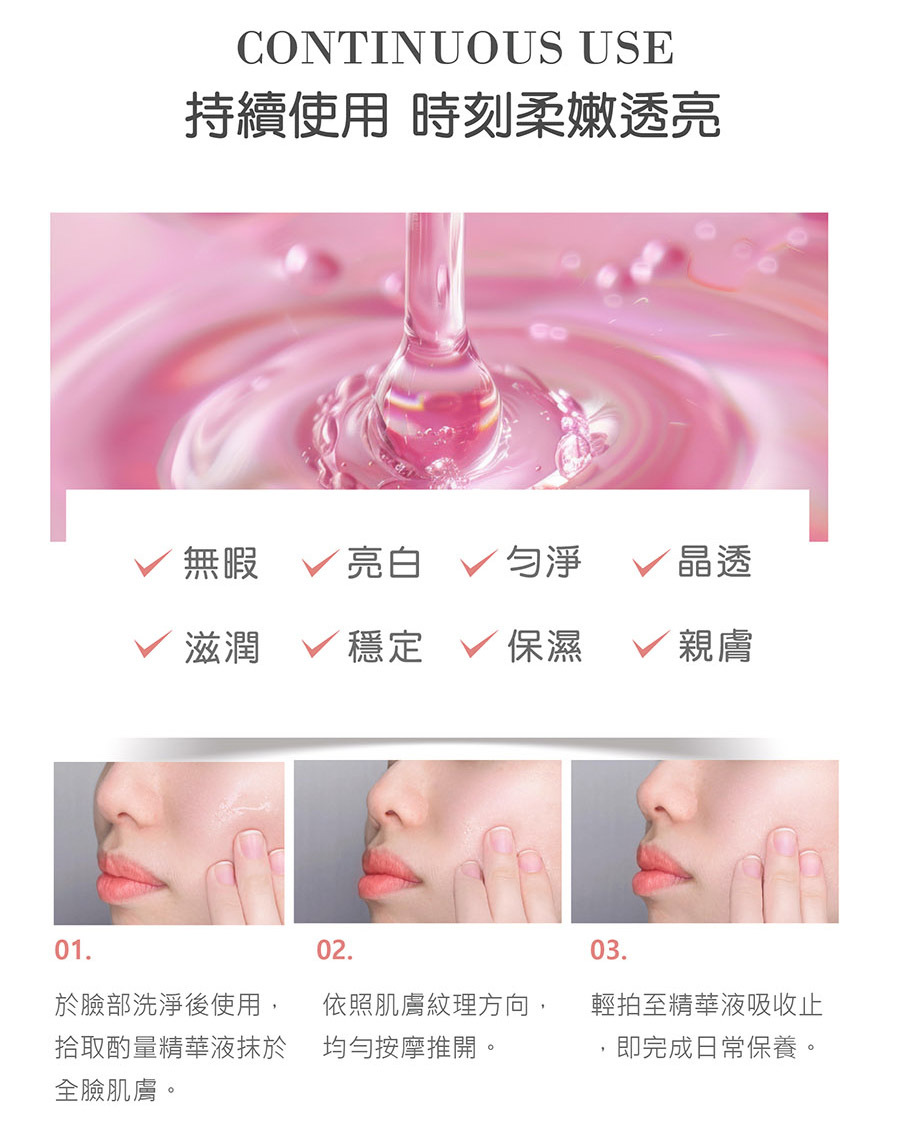 • 修護、抗老、淨化、緊緻 、彈潤。