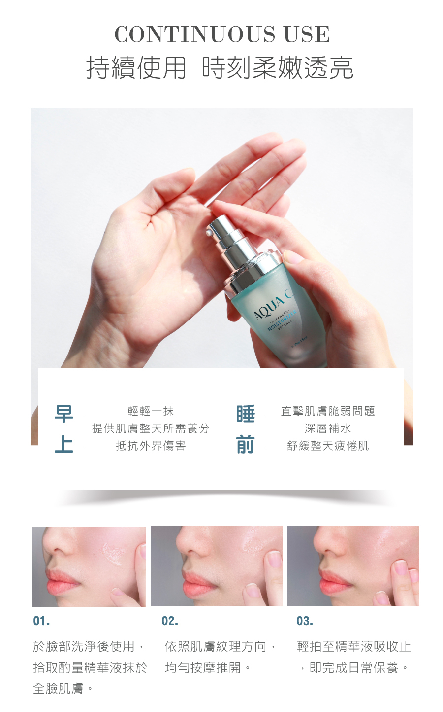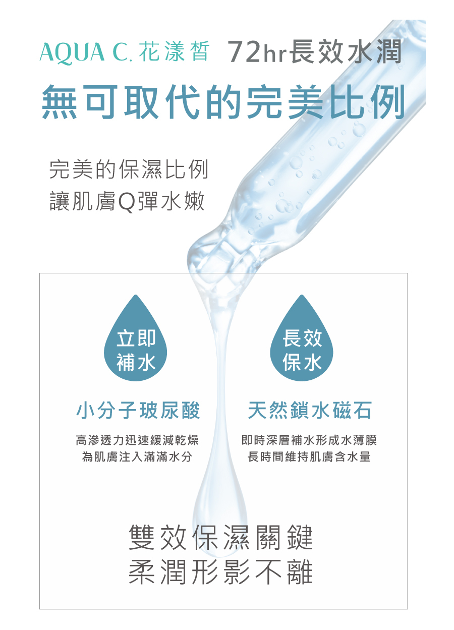 • 獨特微晶鎖水科技,牢牢抓住水分高度鎖水。