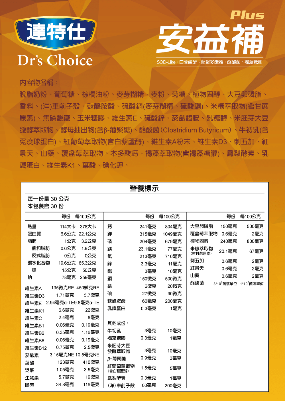 甘蔗原素、初乳蛋白、乳鐵蛋白