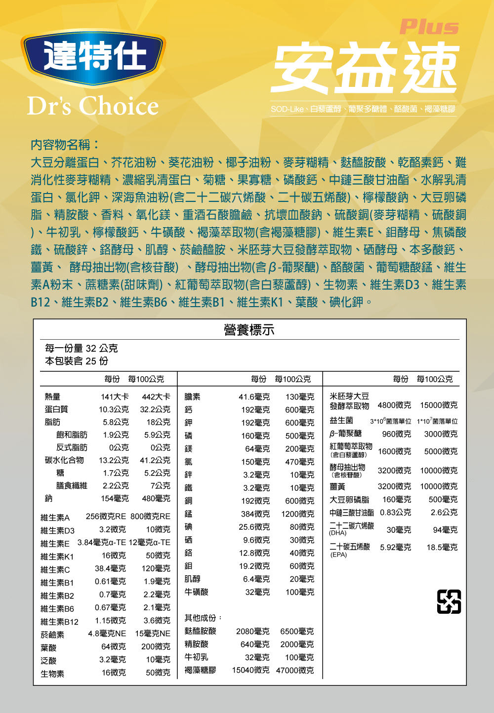 ・豐沛熱量,加上大豆分離蛋白、水解乳清蛋白等優質蛋白質。