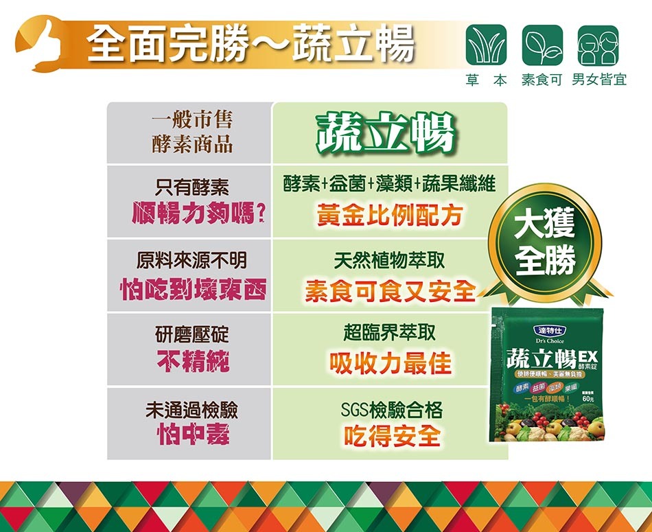・含膳食豐富纖維、維生素、礦物質,自然幫助排便順暢。