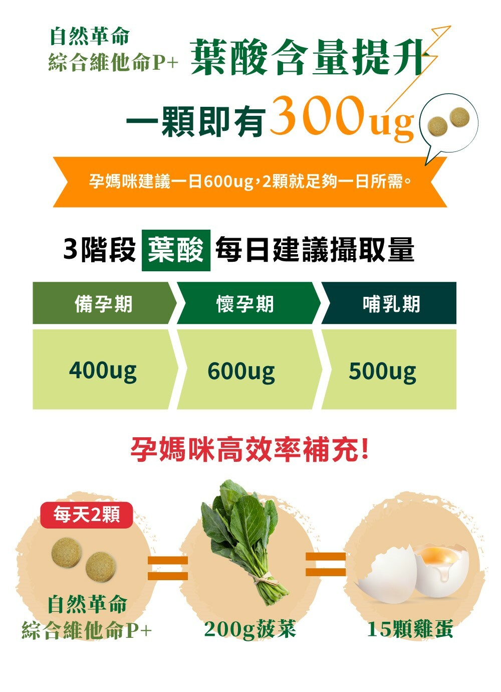 ・足量葉酸,一顆=兩盤青菜,提升營養效率