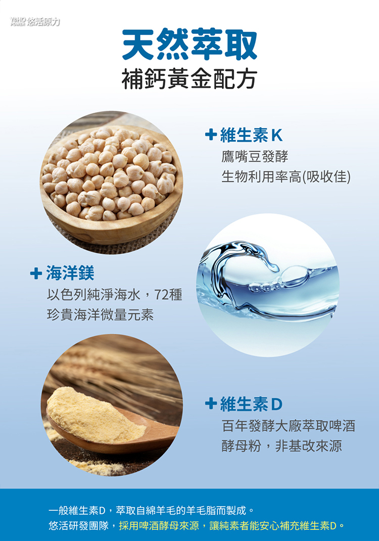 ・添加天然來源維生素D、K,補鈣更鎖鈣