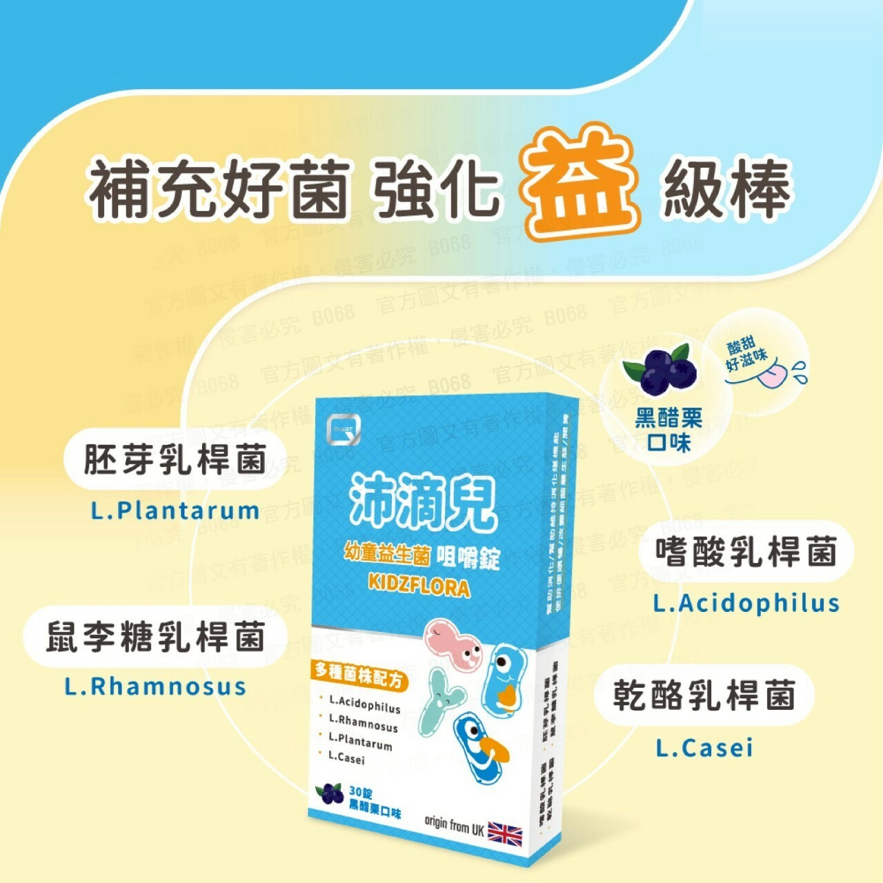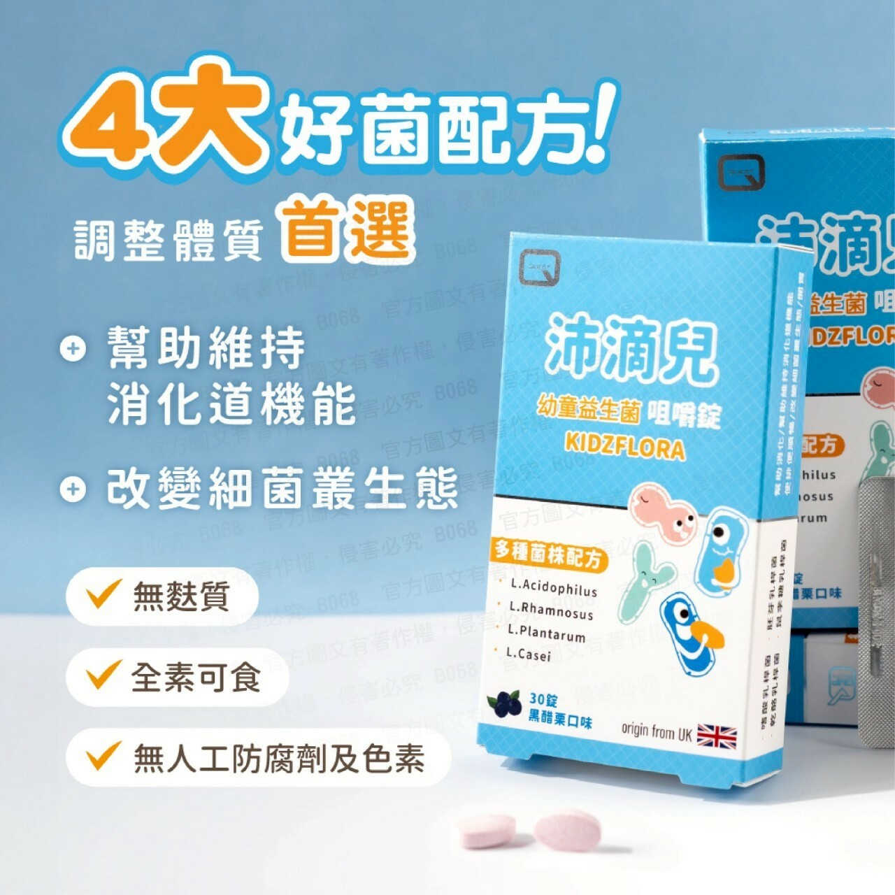 ・嚴選四大乳酸菌株,每錠補充20億活菌
