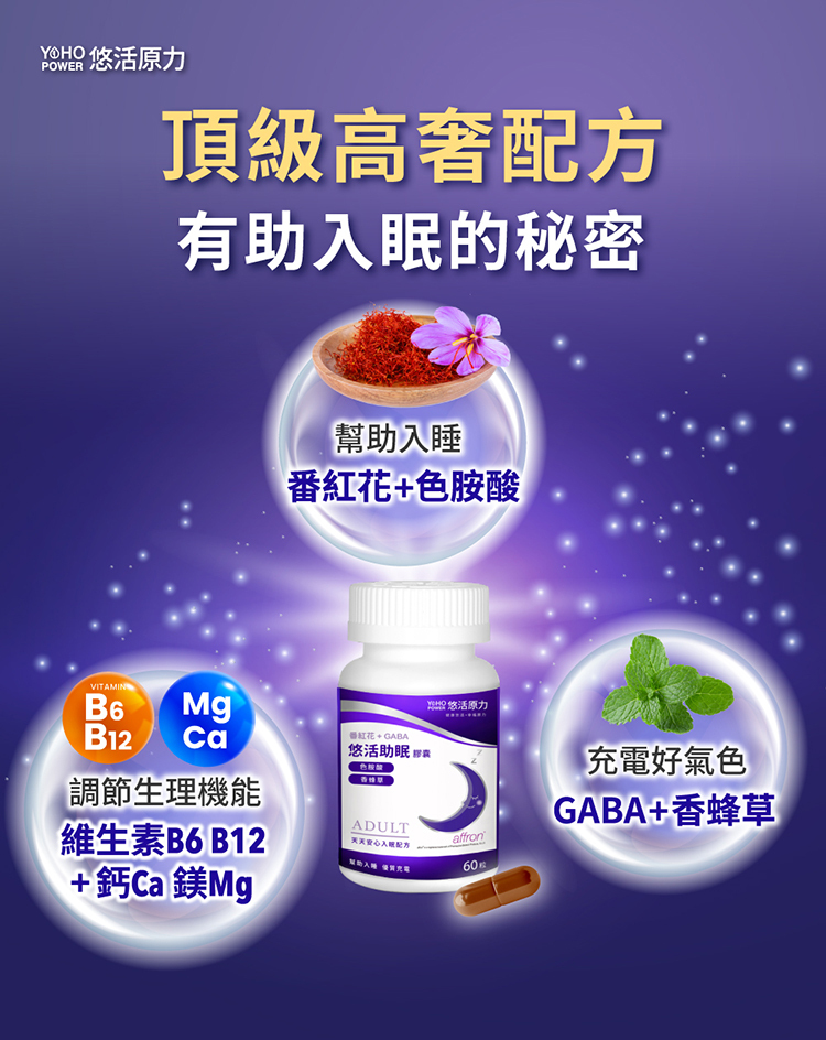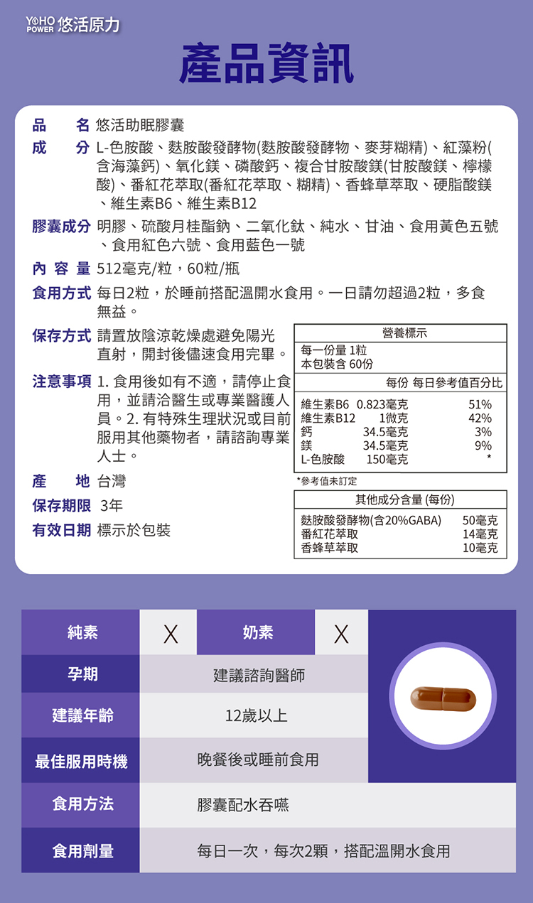 ・多重助眠成分,含色胺酸、義大利香蜂草萃取、