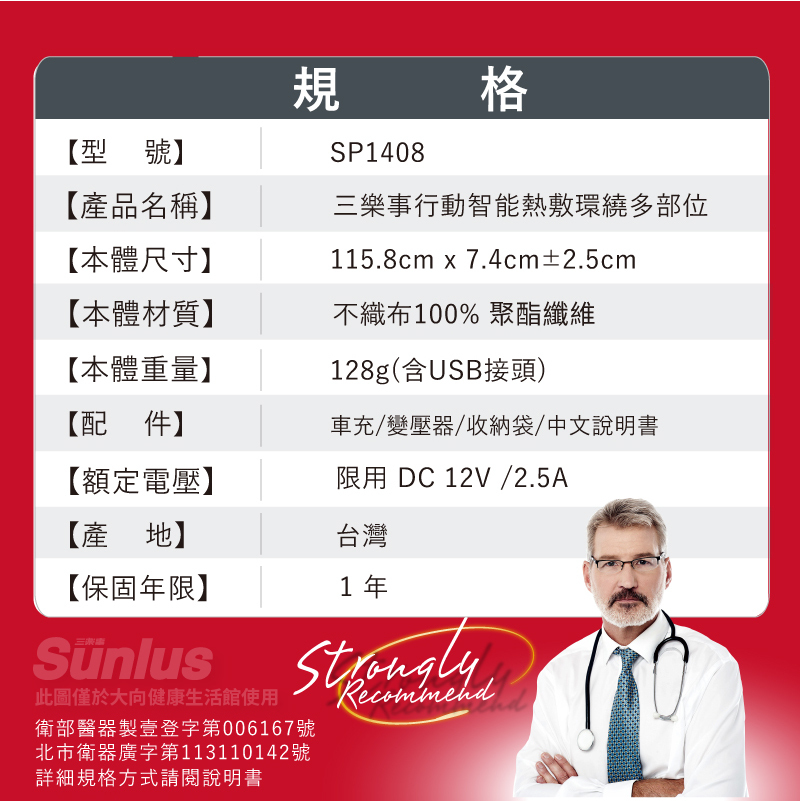 Sunlus三樂事 行動智能熱敷墊環繞多部位(SP1408)