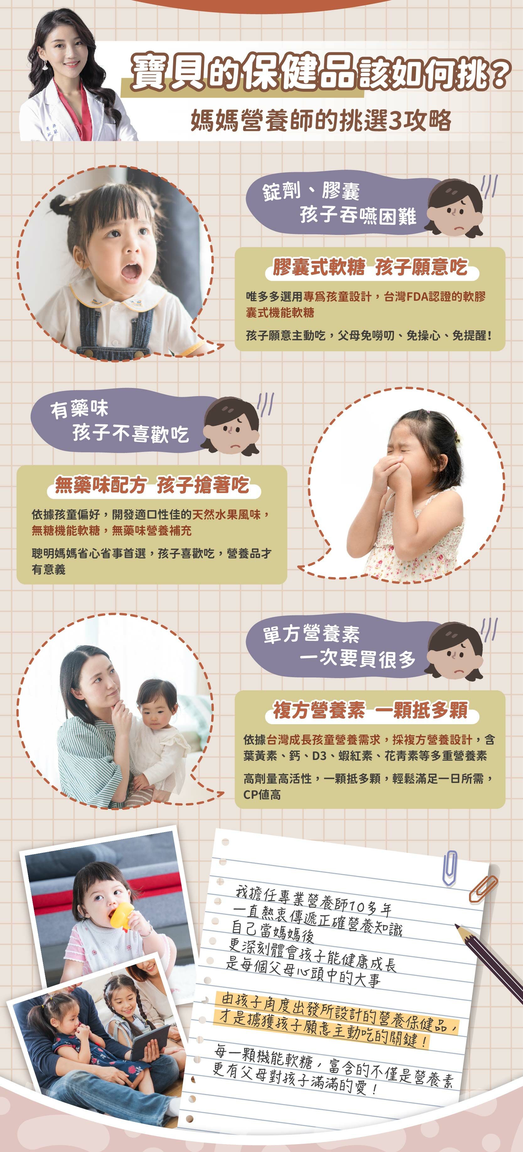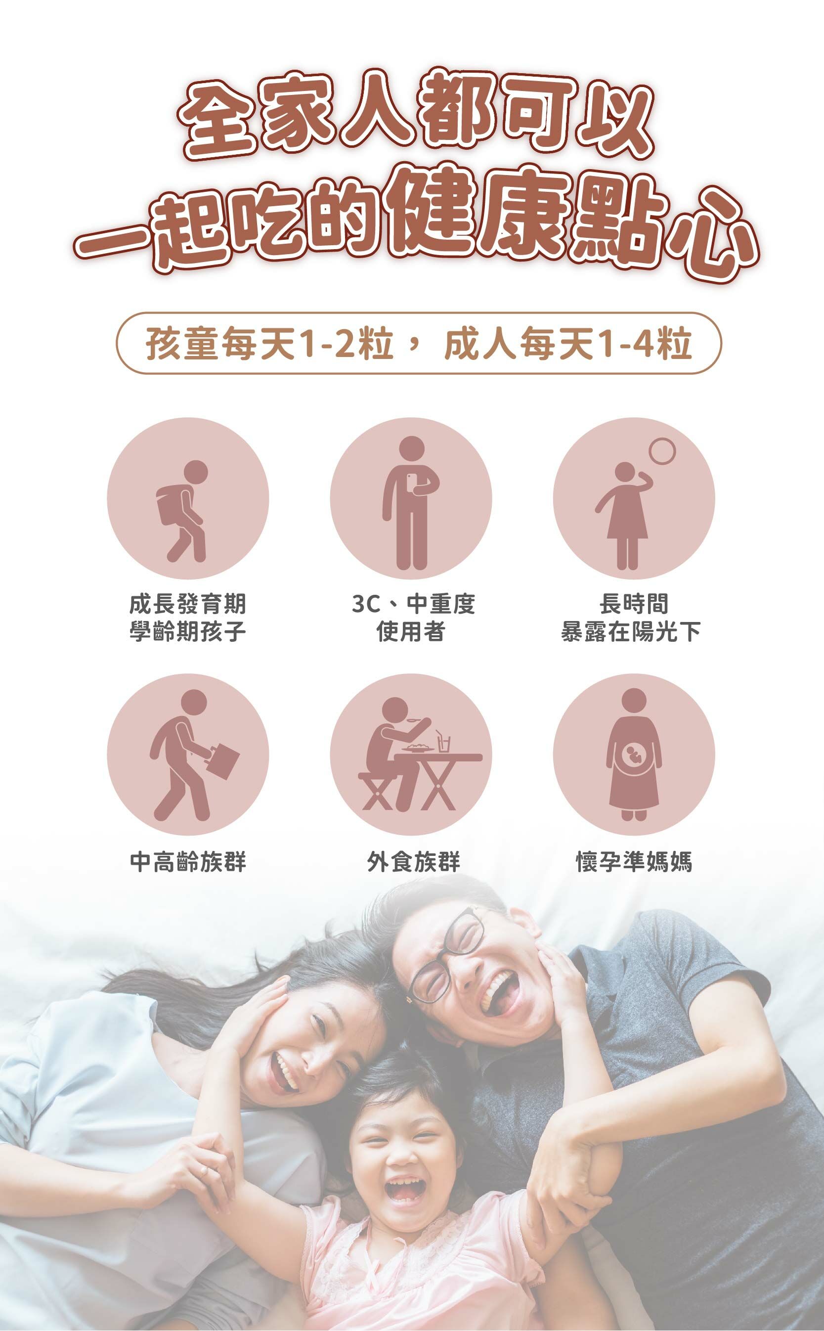 ・食用建議:孩童每日一顆,成人每日1-4顆,