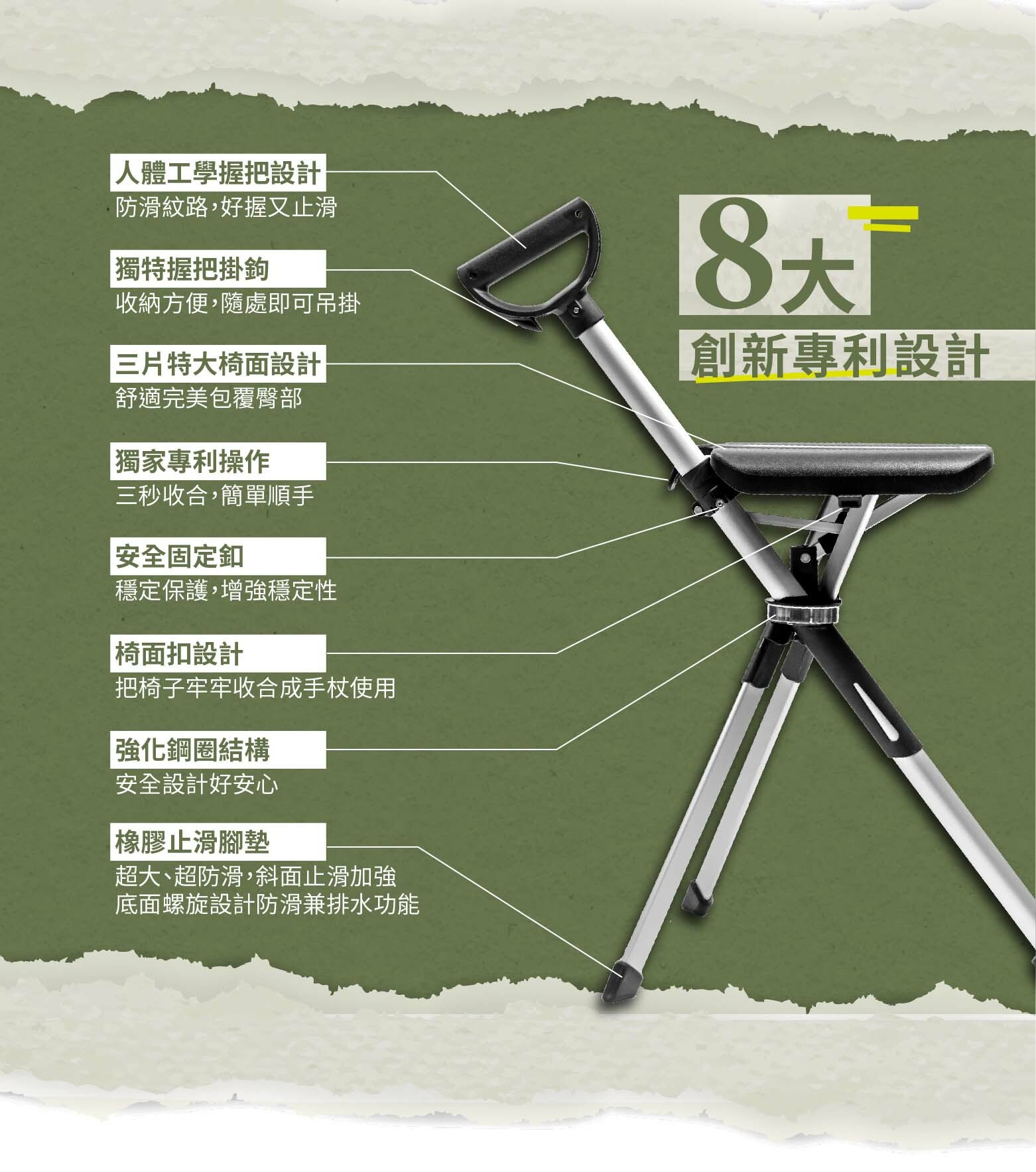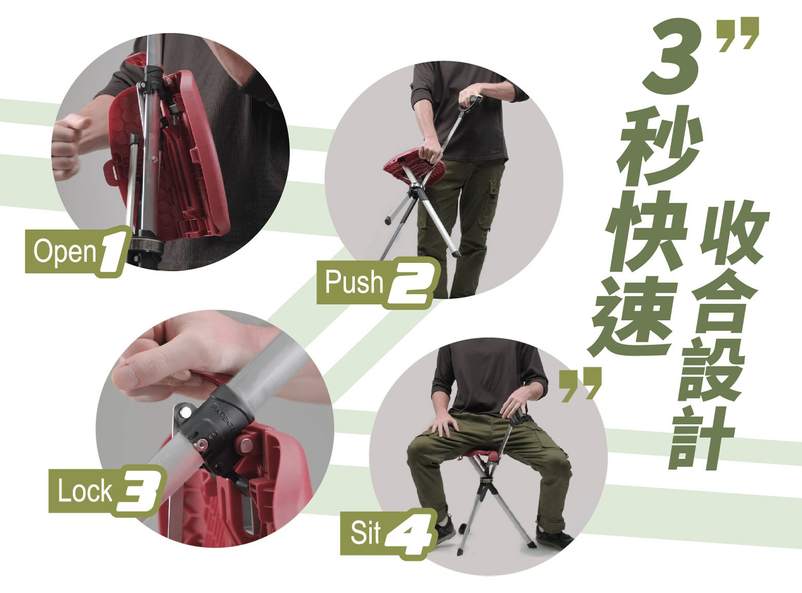 .適用多種活動用途:登山杖釣魚椅、戶外拐杖椅、