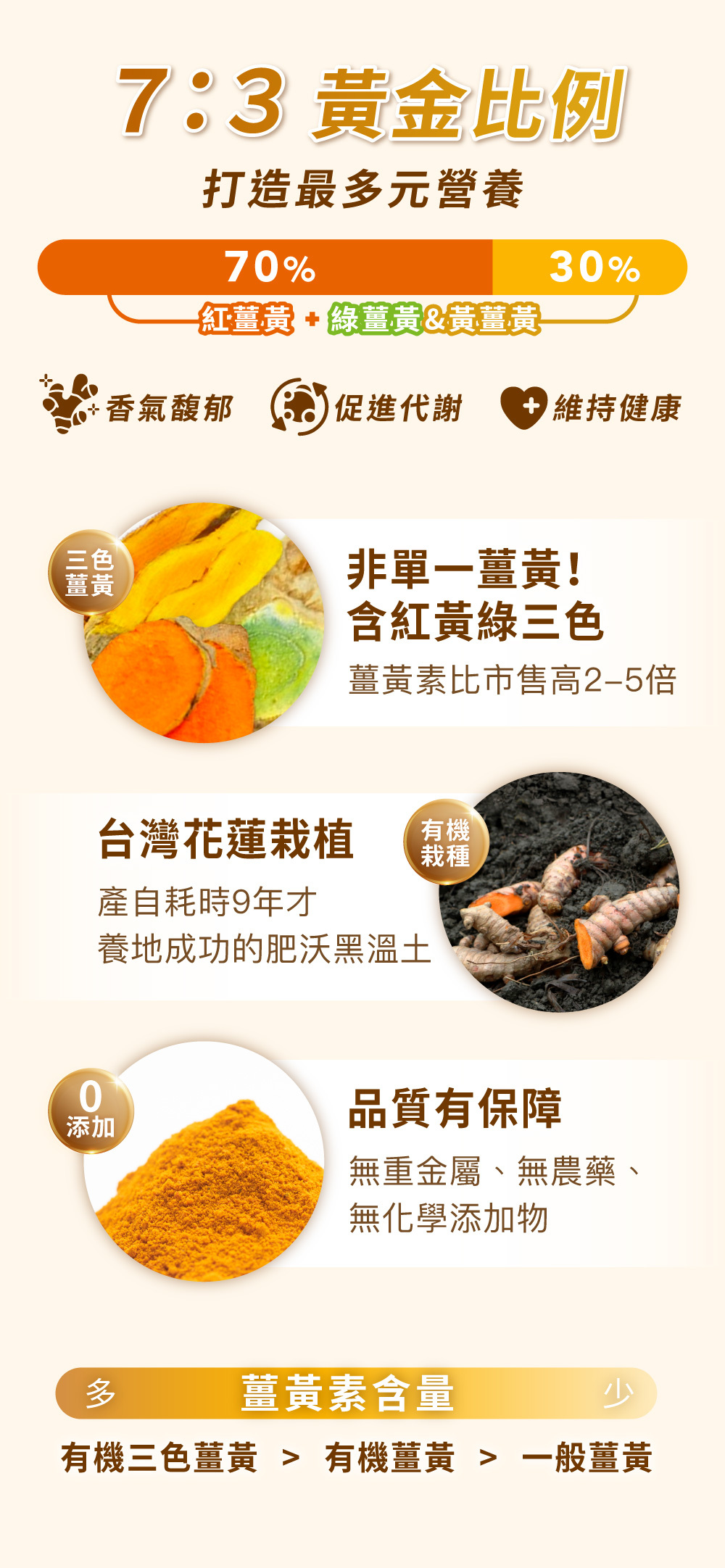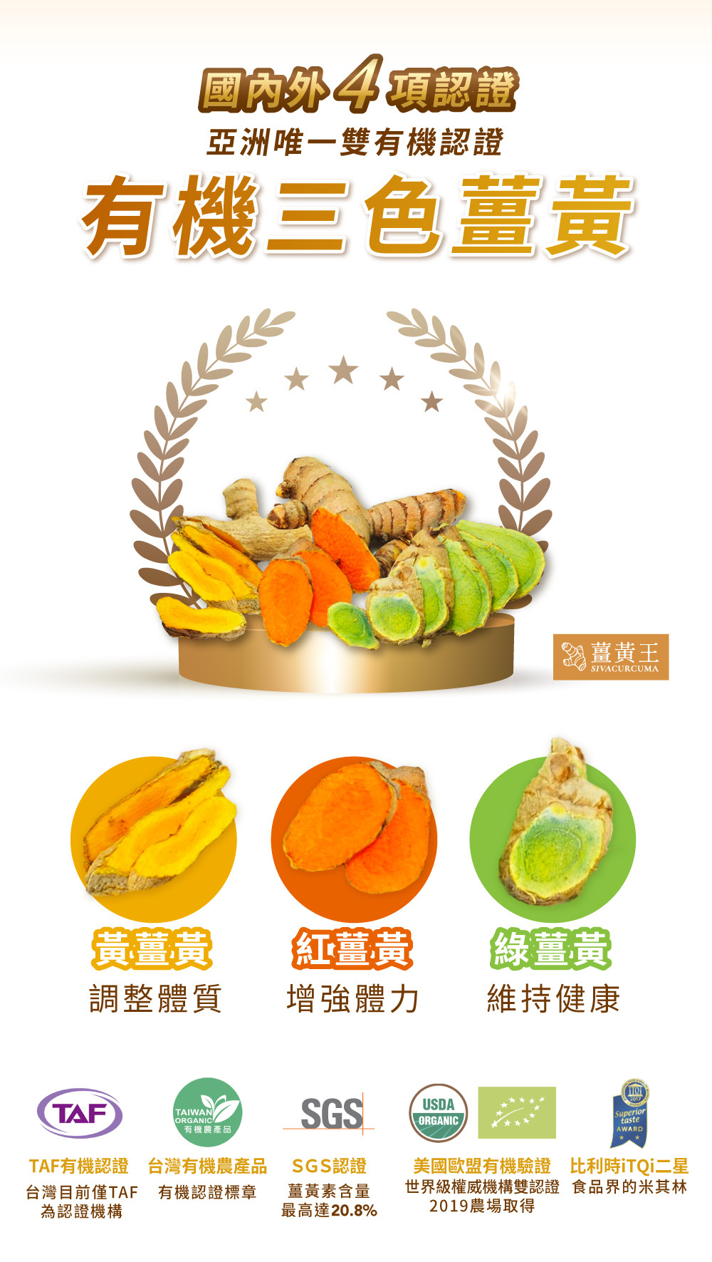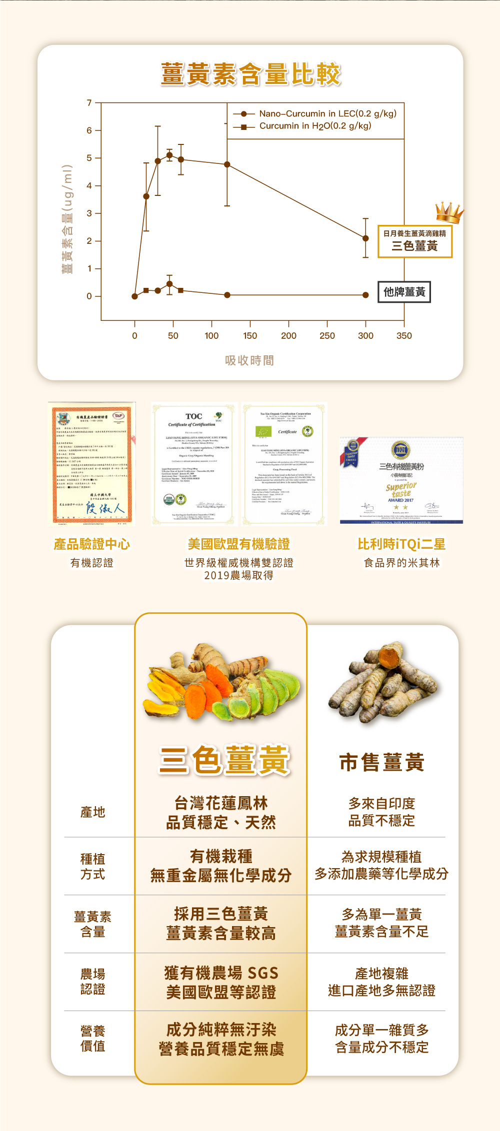 .「日月養生滴雞精」結合「雙有機認證薑黃粉」,